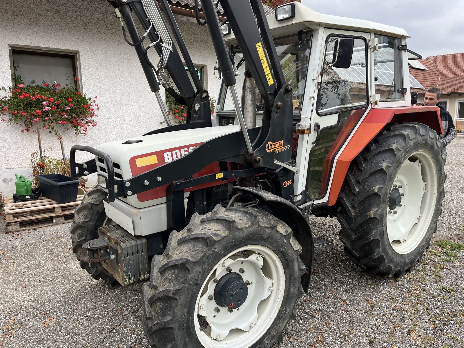 Maschine mit Einhebelsteuergerät, Frontgewicht, hyd. Oberlenker, Hauer Frontlader und Werkzeug