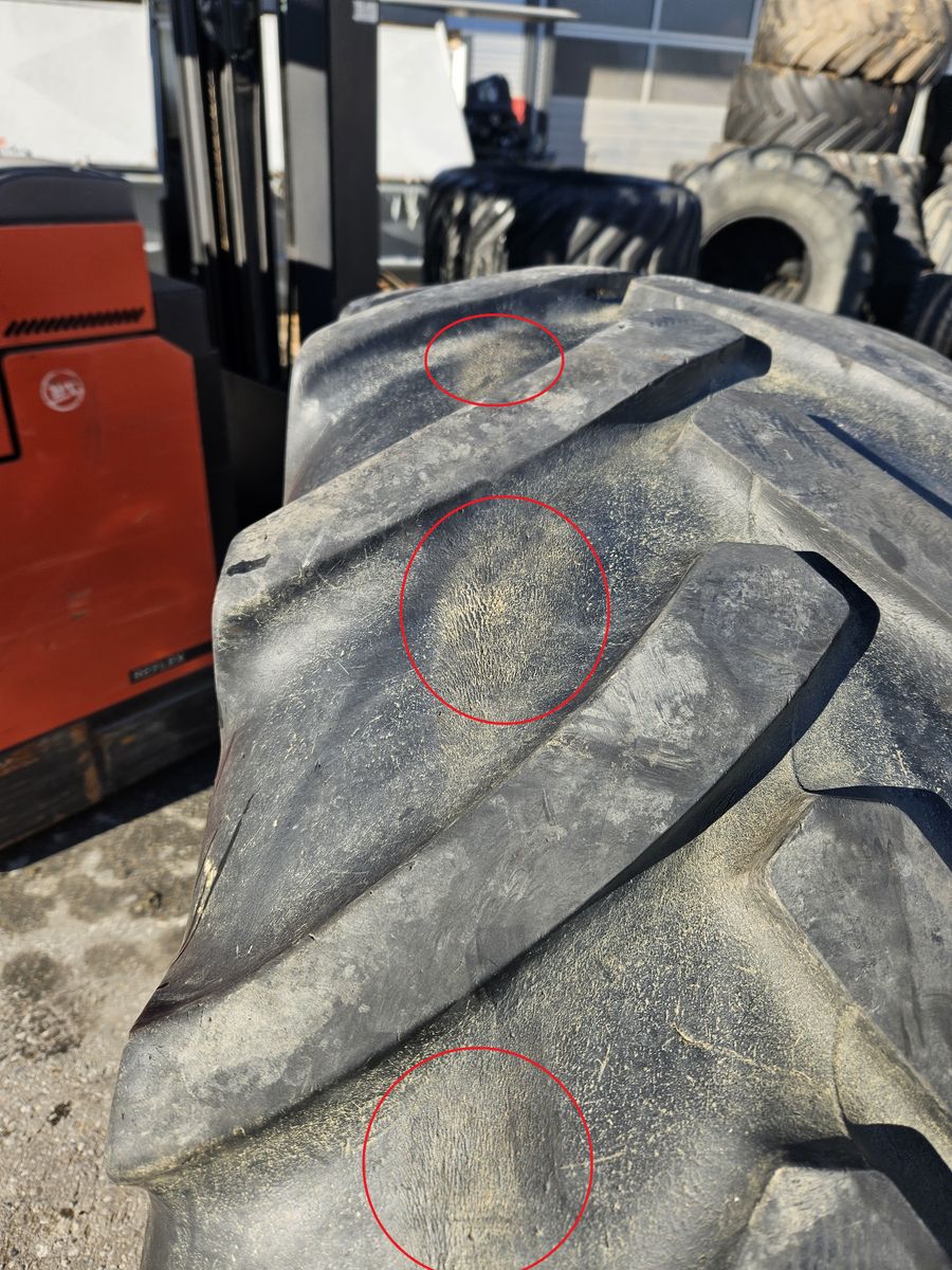 Preis für beide Kompletträder 500/85 R24 zusammen, Ein Reifen mit Ansätzen zur Blasenbildung