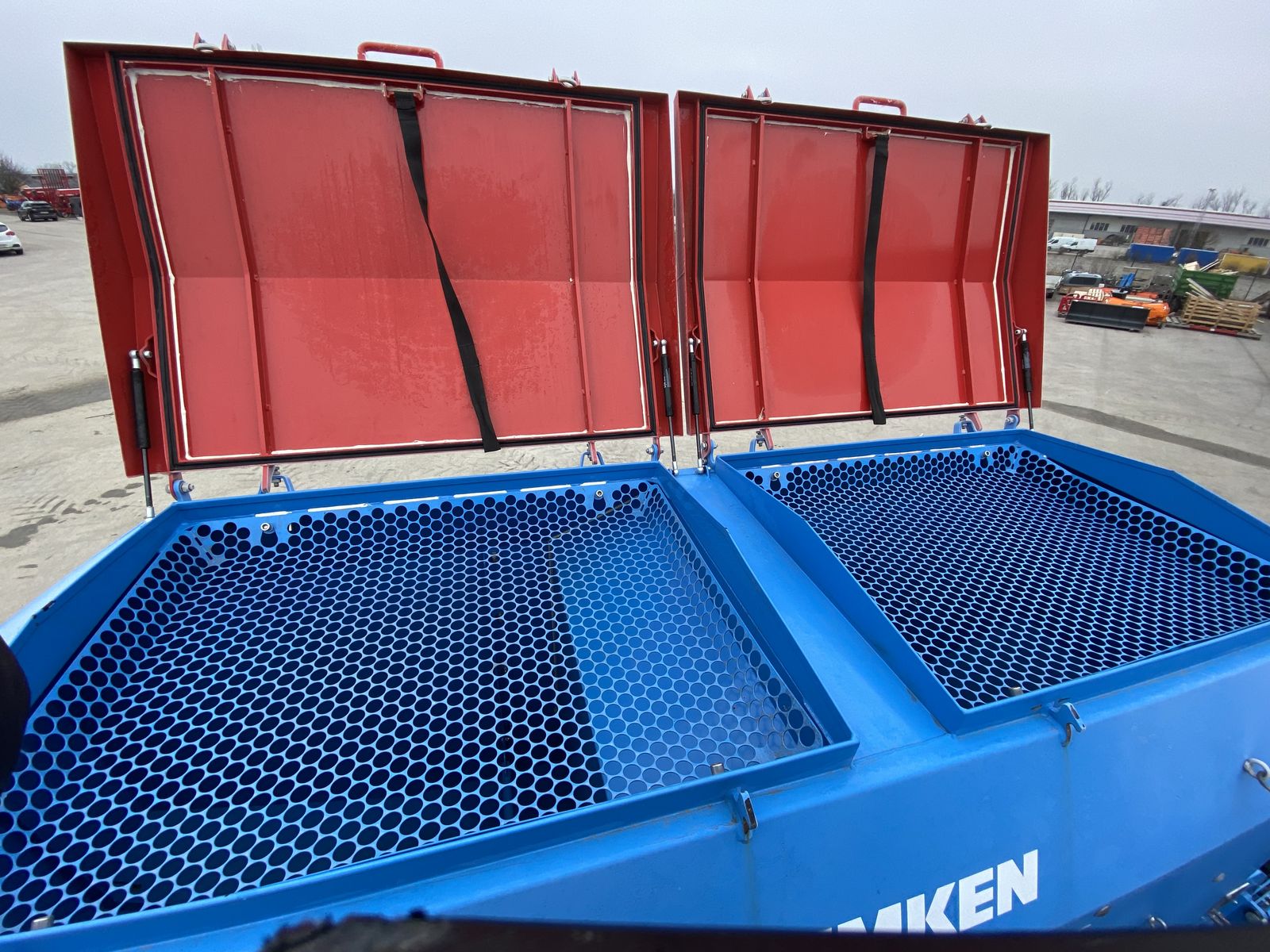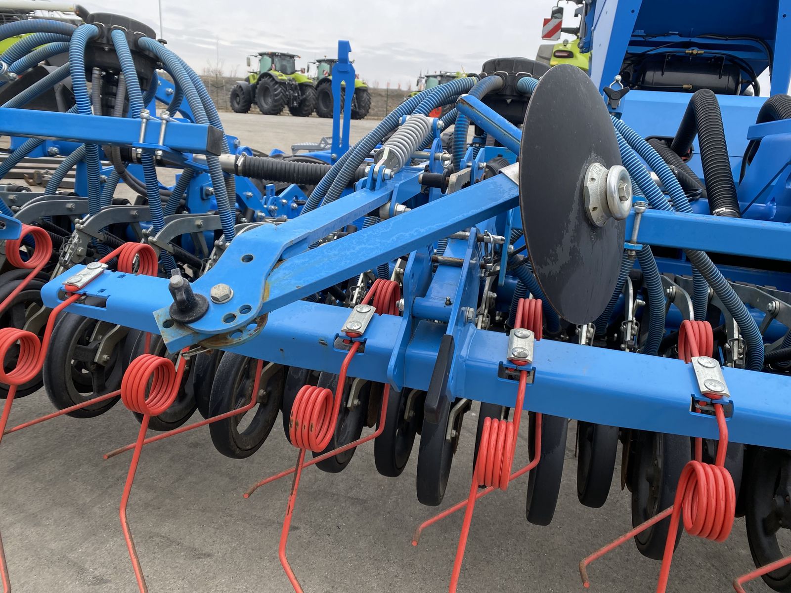 Lemken Solitair DT 600 Vorführmaschine, ungefähr 400ha, Anhängekupplung K80, zweireihiges Arbeitsfeld mit gezackten Hohlscheiben (465mm), Reifenpacker mit integrierter Bodenanpassung, hydraulisch angetriebenes Gebläse, außenliegender Saatgutverteiler, Vorbereitet für Betrieb von beliebigem ISO-Bus Terminal, wartungsfreie Doppelscheibenschare OptiDisc M, Doppelsaatgutbehälter mit 5.100L Volumen, Elektronische Füllstandsüberwachung, elektrisch angetriebene Dosierwelle, 2 Dosierradsätze, 6m Arbeitsbreite mit 125mm Reihenabstand, hydraulische Vorauflaufmarkierung, Saatstriegel auf die gesamt Arbeitsbreite, Behältersieb + Staubfilter, spritzwasserdichter Staukasten, hydraulische Tiefeneinstellung, vorlaufende Reifenpackerwalze 6m, 2-Leiter Druckluftbremsanlage, LED-Arbeitsscheinwerfer + LED-Behälterbeleuchtung