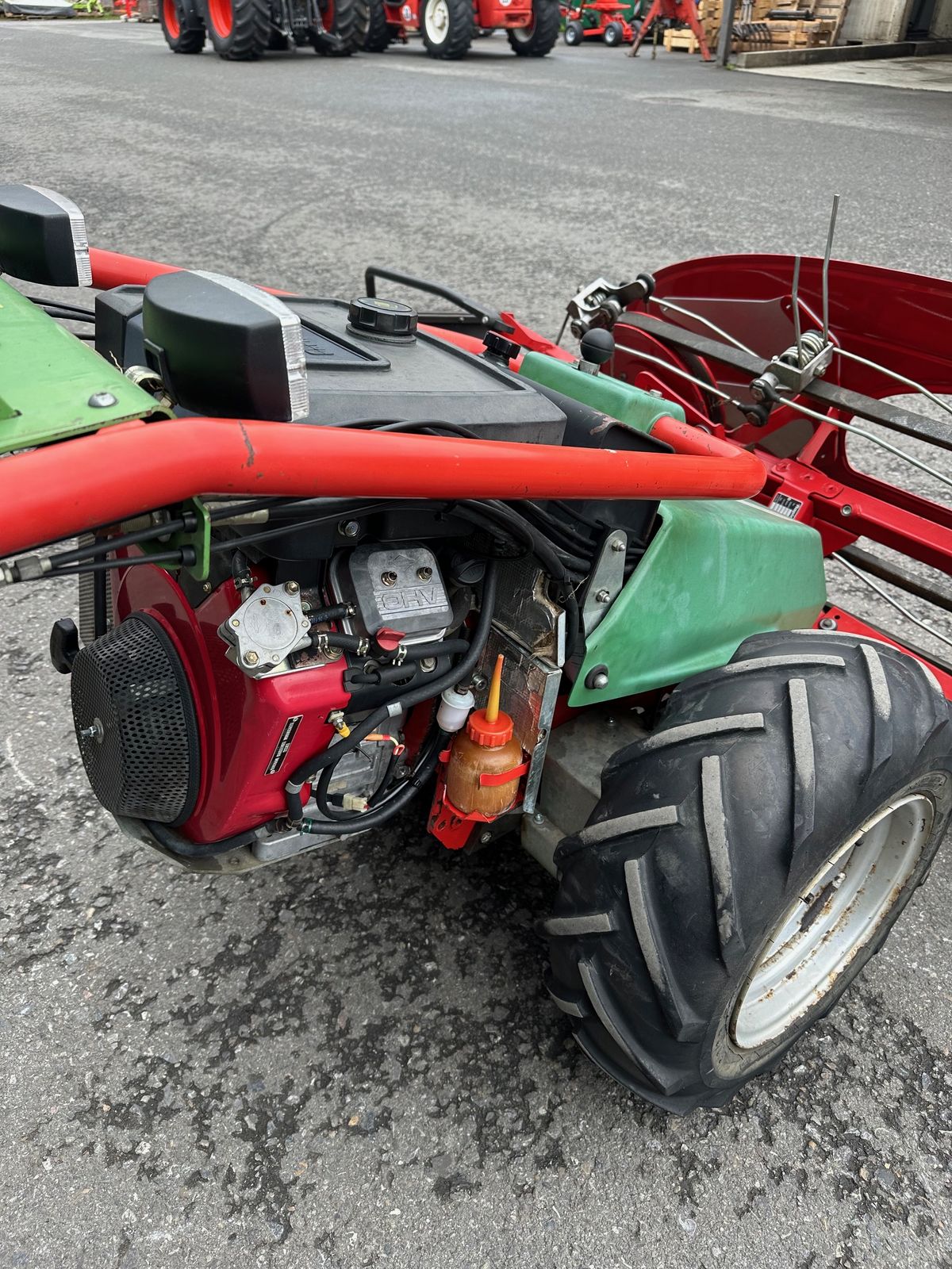 stufenloser Fahrantrieb mittels Drehgriff, Differenzialsperre, Zapfwelle 630/800 U/min.,